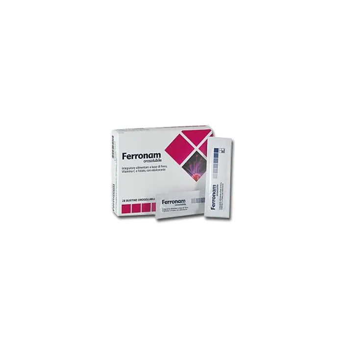 - Ferronam Orosolubile contiene:Ferro, Vitamina C, Folato.