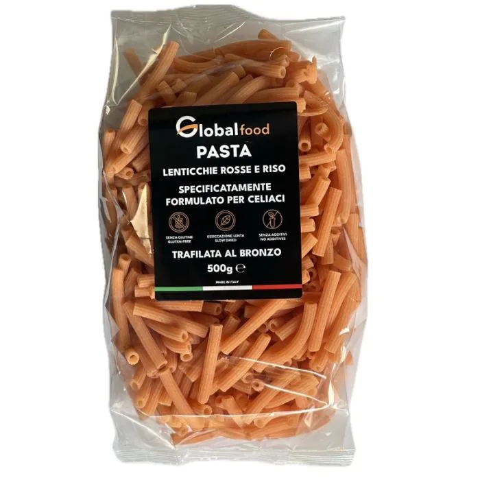 Farina di lenticchie rosse (50%) e farina di riso (50%).