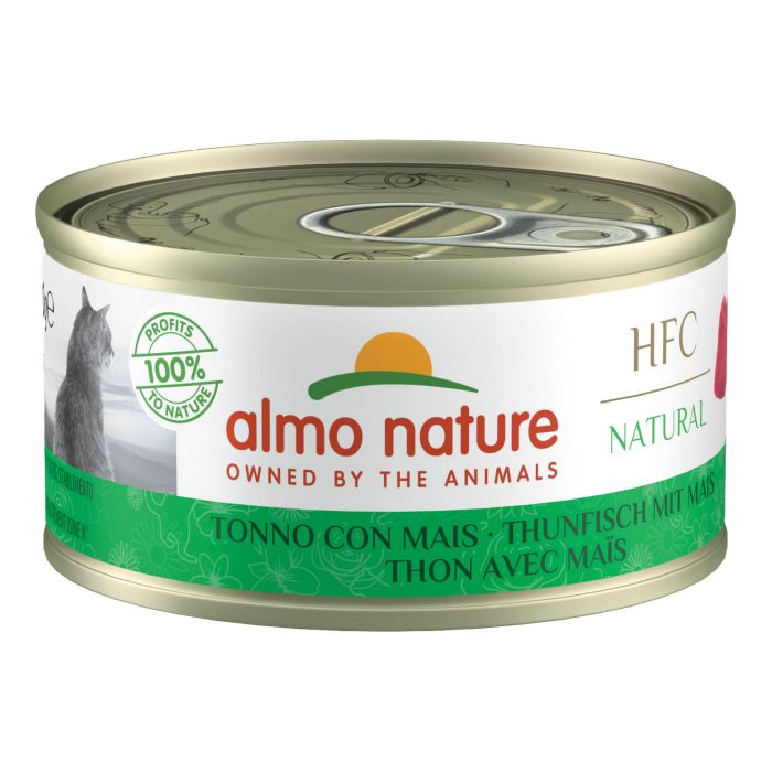 Tonno 70%, brodo di pesce 24%, mais 5%, riso 1%.