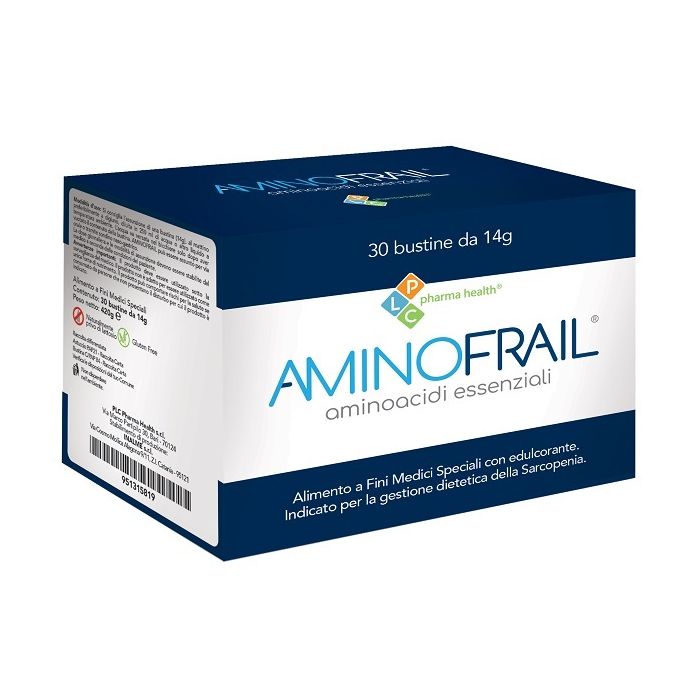 Alimento a fini medici speciali appositamente formulato per la gestione dietetica della sarcopenia, presente nell'anziano fragile, e di condizioni caratterizzate da decadimento muscolare localizzato. Aminofrail contiene tutti i nove aminoacidi essenziali, con un rapporto stechiometrico tra loro uguale a quello dei fabbisogni indicati dall'OMS. Per un maggior recupero della massa e della forza muscolare, la composizione di AMINOFRAIL è stata completata con taurina, vitamina D3 e vitamina B6 le cui carenze sono fortemente correlate alla diminuzione dalla forza muscolare e dunque all'insorgenza di sarcopenia.