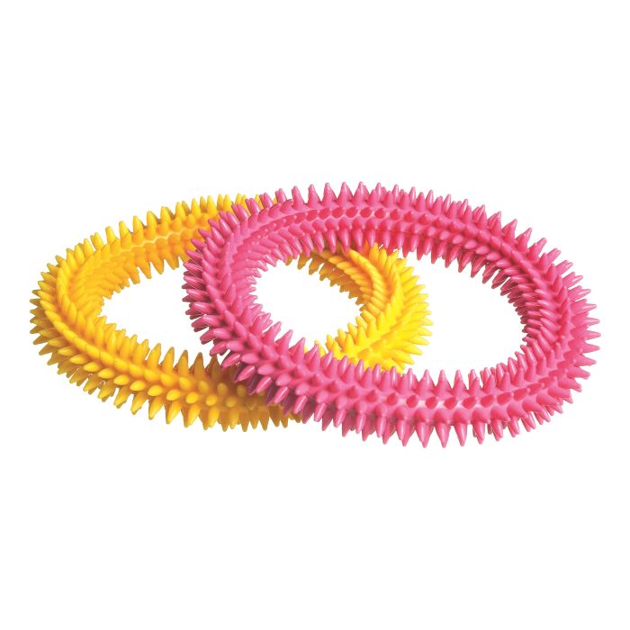 Anelli in gomma dura con aculei, utili per il massaggio di denti e gengive.