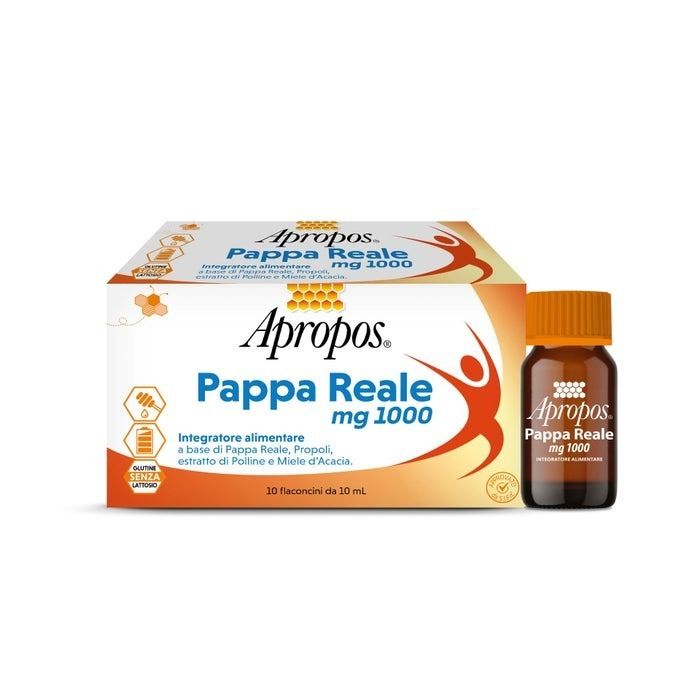Apropos Pappa Reale 1000 mg è un integratore alimentare in flaconcini monodose, con una formula completa e altamente concentrata per fornire energia e vitalità in modo naturale.