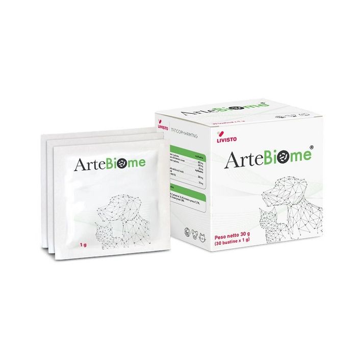Cospargere il contenuto della bustina sul cibo abituale dell'animale domestico.