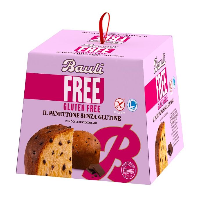 Panettone senza canditi e senza uvetta specificamente formulato per celiaci, con gocce di cioccolato e pasta di scorze di arancia candite. Prodotto da forno a lievitazione naturale.