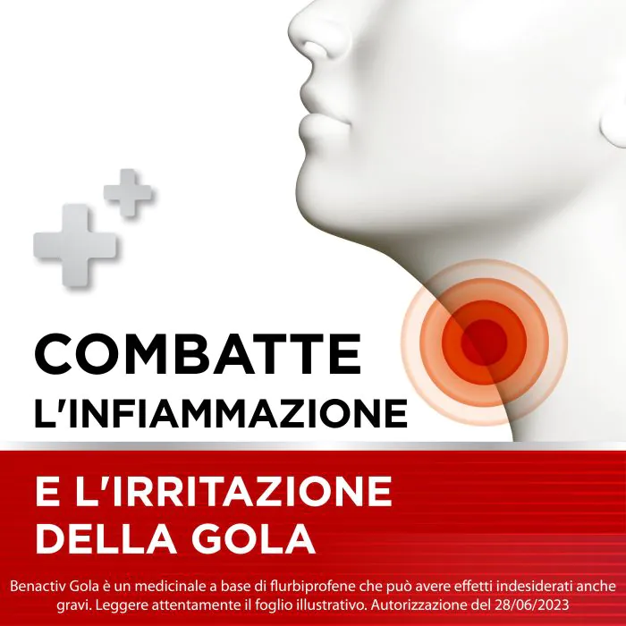 Benactiv Gola Pastiglie Senza Zucchero Gusto Arancia Flurbiprofene 16 Pastiglie