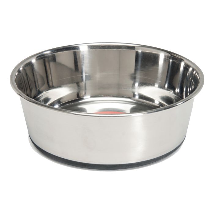 Le ciotole "Durapet" sono di altissima qualità, solide, pesanti e in acciaio inossidabile. Hanno un anello in gomma resistente e permanentemente stampato sulla parte inferiore. Inoltre questo particolare anello si attacca al pavimento evitando lo slittamento della ciotola e quel fastidioso rumore tra il pavimento e la ciotola mentre il cane mangia e beve.