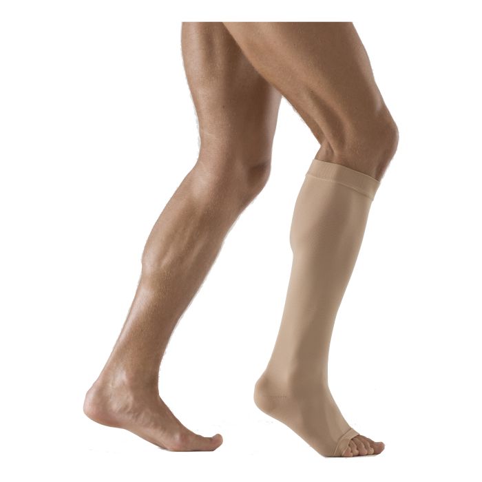 poliestensiva, ad elevata contenitività, realizzata in cotone, elastam e poliammide. Anatomica, elevata compressione, tubolare senza cuciture, con il tallone in tessuto rinforzato e sottile per non fare spessore dentro la scarpa, punta aperta, bordi ripiegati con cuciture piatte.