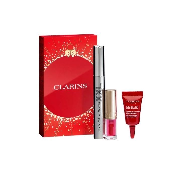 Clarins value set xxl mascara nazionale xmas 25 wonder volume xxl 01 + lip comfort oil 04 + total eye lift 3 ml new