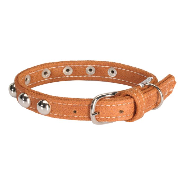 Elegante collare in cuoio foderato sintetico, cucito con borchie, nel colore "Terra di Siena".