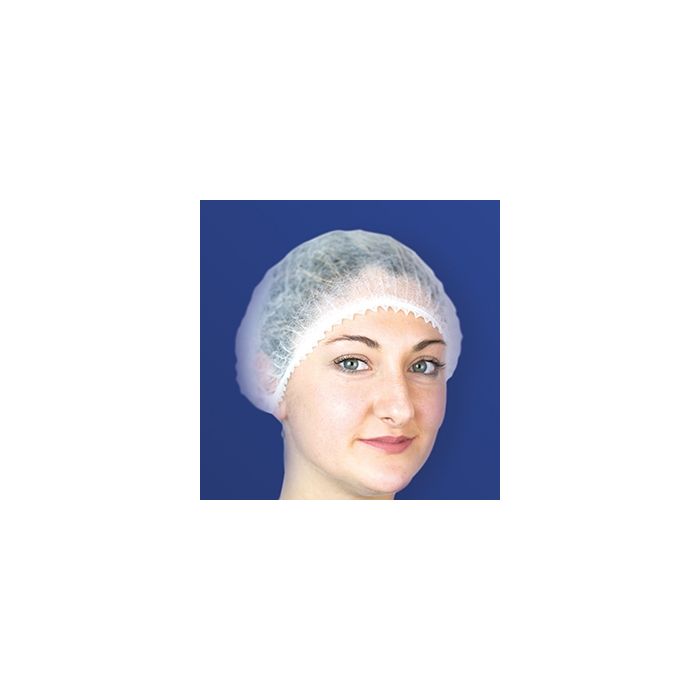 Cuffia monouso plissettata in tessuto non tessuto TNT "medical grade" in polipropilene PP opaco di ottima resistenza, traspirante, morbido, inodore. Buona vestibilità, con elastico lungo tutto il bordo. Disponibile in bianco e azzurro.