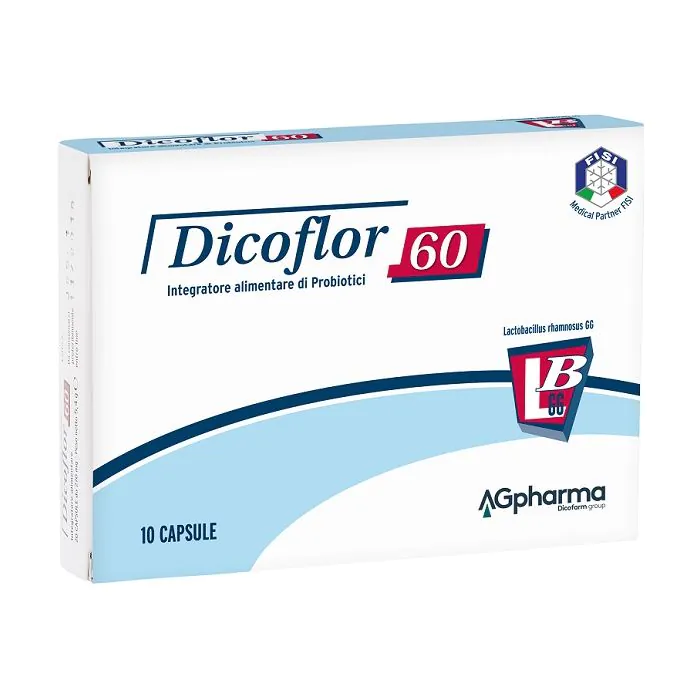 Dicoflor 60 Capsule è un integratore di fermenti lattici, contenente 6 miliardi di cellule vive di Lactobacillus rhamnosus GG, utile per favorire l'equilibrio della flora batterica intestinale, sia in condizioni normali che in caso di squilibri fisiologici, come la sindrome diarroica.