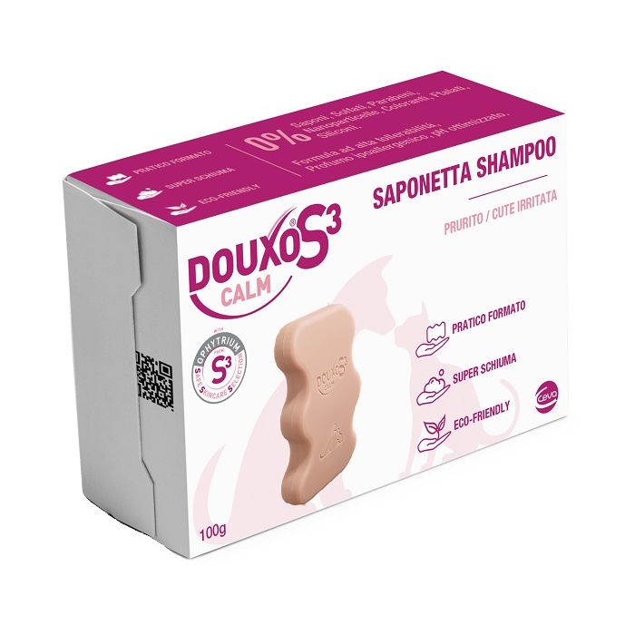 Shampoo in saponetta ad alta concentrazione di Ophytrium per cute sensibile, irritata o con prurito di cani e gatti; lenisce, riequilibra e rinforza la cute.