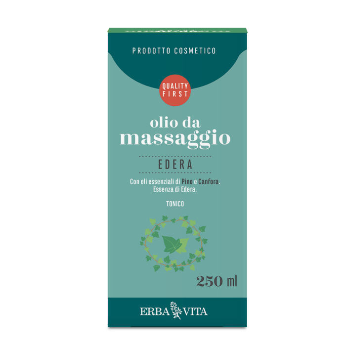 Erba Vita Olio da Massaggio Edera è un prodotto cosmetico formulato con una miscela di purissimi oli essenziali naturali ed essenze vegetali selezionate, tra cui Edera, Ippocastano, Pino e Canfora, sapientemente miscelate con oli di Mandorle dolci e di Soia. Questa combinazione di ingredienti rende l’olio ideale per un massaggio rimodellante, tonico e rivitalizzante. L’Edera è tradizionalmente utilizzata nei trattamenti corpo per favorire un’azione snellente e drenante, mentre l’Ippocastano contribuisce al benessere della circolazione. Il veicolante completamente vegetale, altamente compatibile con la pelle, facilita lo scorrimento delle mani durante il massaggio e favorisce l’assorbimento dei principi attivi. Grazie alle sue proprietà emollienti, l’olio aiuta a nutrire e rivitalizzare le pelli secche e disidratate, lasciando la cute morbida, elastica e tonica.