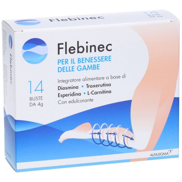 Flebinec è un integratore alimentare a base di diosmina, troxerutina ed esperidina in miscela micronizzata, arricchito con L-carnitina tartrato. È indicato in caso di ridotto apporto o aumentato fabbisogno dei suoi componenti e può risultare utile per sostenere la fisiologica funzionalità del microcircolo e il tono venoso. La diosmina contribuisce al mantenimento di una buona circolazione sanguigna, mentre l’esperidina svolge un’azione antiossidante a favore dell’integrità dei vasi. La troxerutina agisce in sinergia con effetti vasomotori e antiedemigeni. La L-carnitina favorisce la produzione di energia supportando la funzione muscolare ed endoteliale e il ritorno venoso.