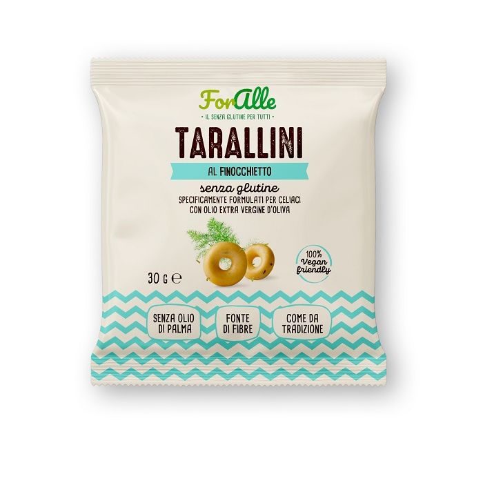 Snack salato specificamente formulato per celiaci, al finocchietto con olio extravergine d'oliva.