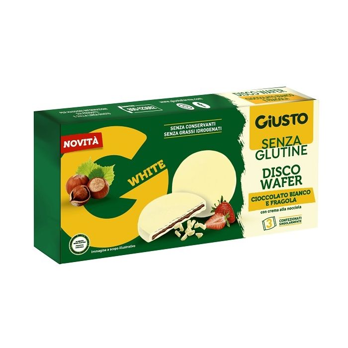 Giusto senza glutine disco wafer cioccolato bianco e fragola 3 x 24 g