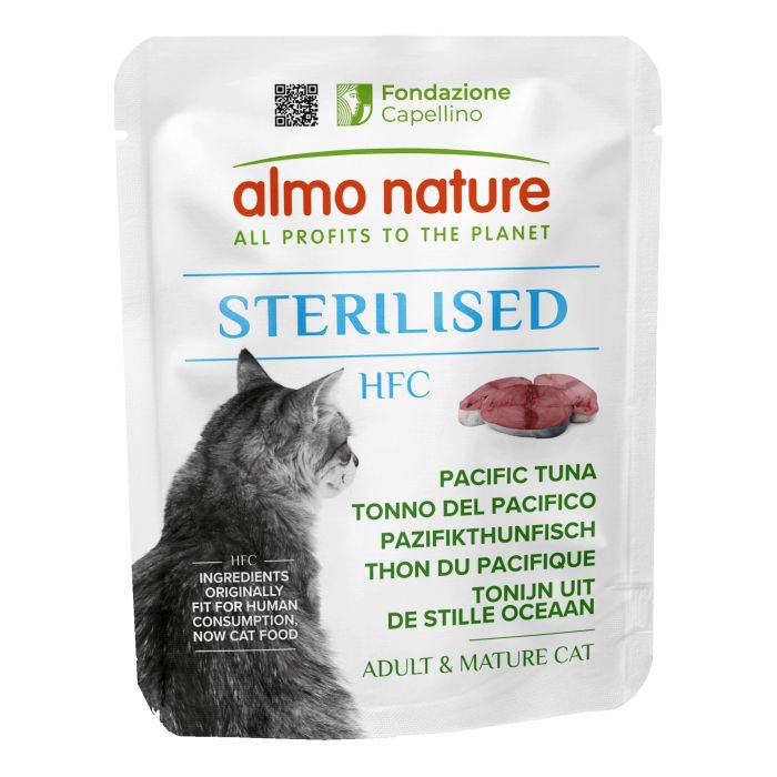 Sterilised HFC Natural è ideale per gatti sterilizzati o poco attivi, il ridotto apporto calorico aiuta a controllare il peso. Il pesce apporta proteine che aiutano a preservare la massa muscolare. Preparato con ingredienti in origine idonei al consumo umano, ora alimento per gatti per scelta commerciale.