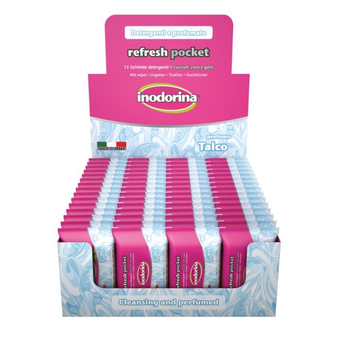 Le salviette Inodorina Refresh sono utilissime nei momenti di vita quotidiana con il proprio animale: prima di un viaggio in auto e al termine di una passeggiata o di una gita all’aperto. Inodorina Refresh è particolarmente indicata al momento del rientro in casa nei giorni di pioggia perché neutralizza le molecole di cattivo odore sul manto bagnato, lasciando il pelo deterso e profumato.