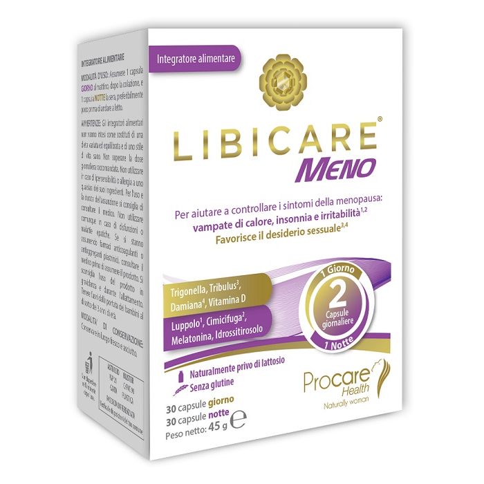 Integratore alimentare per aiutare a controllare i sintomi della menopausa: vampate di calore, insonnia e irritabilità.
