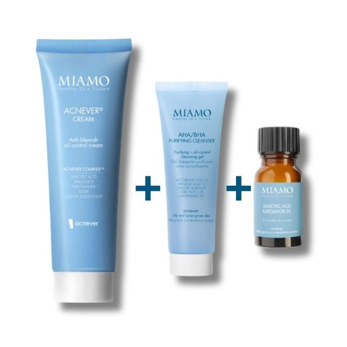 Miamo Protocollo Essenziale Pelle Acneica Acnever Cream 50ml + AHA/BHA Purifying Cleanser 50ml + Salicylic Acid Exfoliator 10ml
