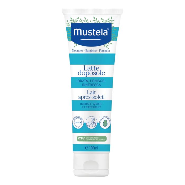 Latte doposole che idrata lenisce e rinfresca la pelle di tutta la famiglia dopo l’esposizione al sole, utilizzabile fin dalla nascita.