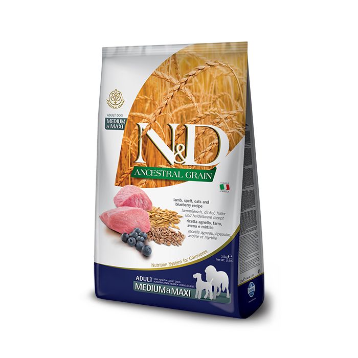 N&d ancestral grain dog lamb & blueberry adult medium/maxi 12 kg
