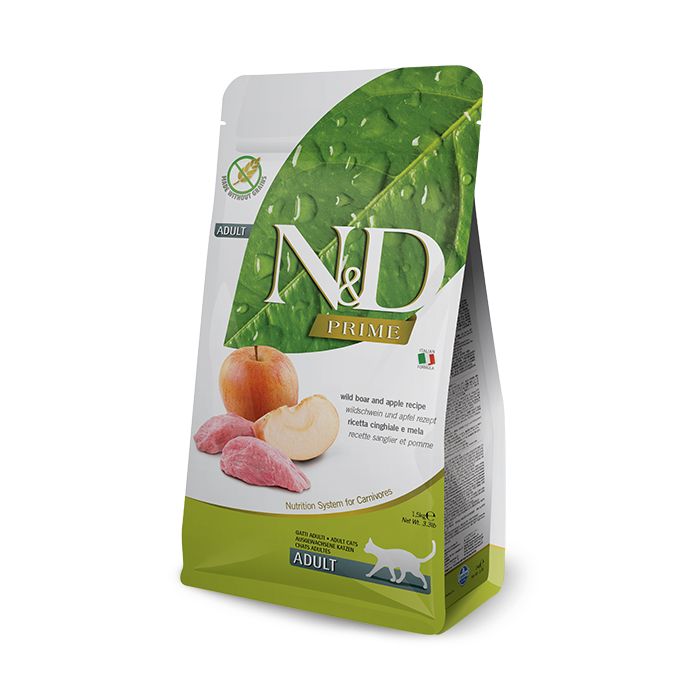 Cinghiale (25%), proteine di cinghiale disidratate (23%), patata dolce, pollo disossato, proteine di pollo disidratate, grasso di pollo, uova essiccate, aringa, proteina di aringa disidratata, olio di pesce (da aringa), fibra di piselli, carote essiccate, farina di erba medica, inulina, fruttoligosaccaridi, estratto di lievito (fonte di manno-oligo-saccaridi), mela essiccata (0,5%), melagrano essiccato, arancia dolce essiccata, spinaci essiccati, bucce e semi di psillio (0,3%), mirtillo essiccato, cloruro di sodio, lievito di birra essiccato, curcuma (0,2%), estratto di aloe vera.