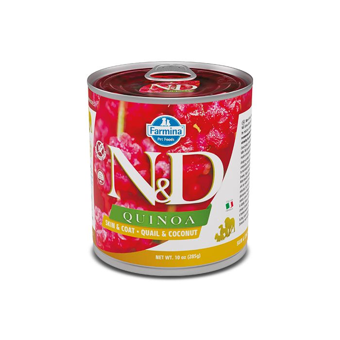 N&d dog quinoa skin & coat quail & coconut 285 g