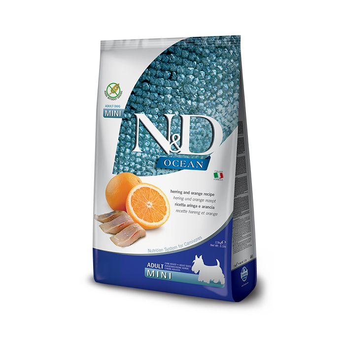 Aringa (26%), proteina di aringa disidratata (25%), patata dolce, olio di pesce (da aringa), uova essiccate, fibra di piselli, carote essiccate, farina di erba medica, inulina, fruttoligosaccaridi, estratto di lievito (fonte di manno-oligo-saccaridi), arancia dolce essiccata (0,5%), mela essiccata, melograno essiccato, spinaci essiccati, bucce e semi di psillio (0,3%), mirtillo essiccato, cloruro di sodio, lievito di birra essiccato, curcuma (0,2%), estratto di aloe vera, glucosamina, solfato di condroitina.