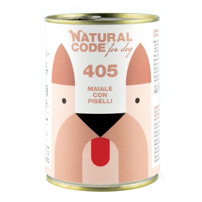 67% maiale (muscolo-cuore-fegato-polmone), 5% piselli, 1% minerali, 0,1% zenzero, 0,1% olio di oliva, 0,1% olio di girasole.