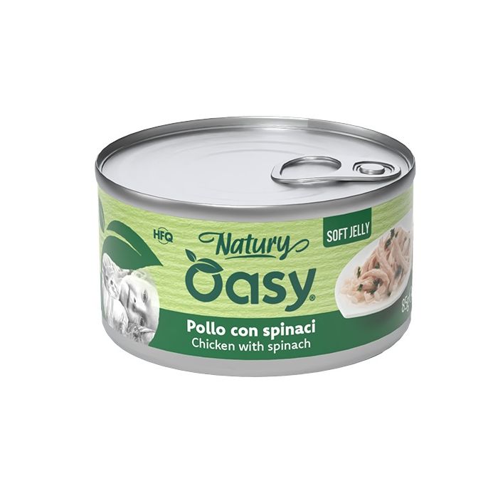 Oasy wet cat natury soft jelly pollo con spinaci lattina 85 g