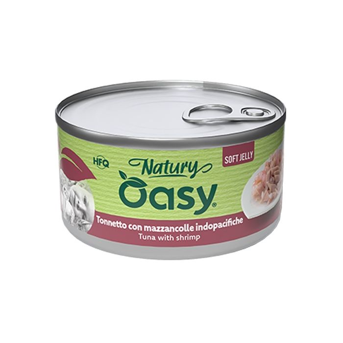 Oasy wet cat natury soft jelly tonnetto con mazzancolle lattina 150 g