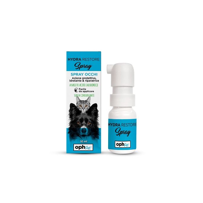 Ophpet Hydra Restore Spray va usato ad occhio aperto e può essere utilizzato per trattare disturbi oculari di minore entità. Applicata nell’occhio, la soluzione è in grado di alleviare, per esempio, i sintomi associati a sindrome da occhio secco, piccole lesioni oculari o il discomfort percepito a seguito di intervento chirurgico.
