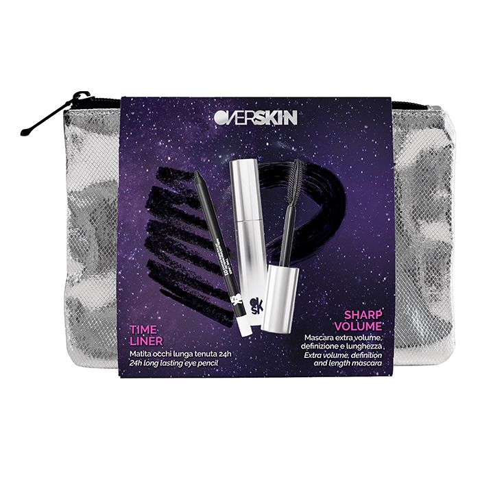 Overskin kit midnight eyes christmas 2025 1 mascara sharp volume + 1 matita occhi time liner 01 bold black + 1 sparkling pochette