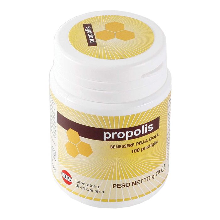 Propolis estratto secco (8-12% galangina), liquirizia (Glycyrrhiza glabra L.) radice estratto secco (19% acido glicirrizico), aloe vera [Aloe vera (L.) Burm. F., syn Aloe barbadensis Mill.] gel liofilizzato 200:1 (aloina < 1 ppm) 15 mg, anice (Pimpinella anisum L.) frutti olio essenziale 14 mg, timo (Thymus vulgaris L.) sommità olio essenziale 4 mg, edulcorante: sorbitolo; amido di mais; antiagglomeranti: sali di magnesio degli acidi grassi (vegetali), biossido di silicio; edulcorante: sucralosio.
