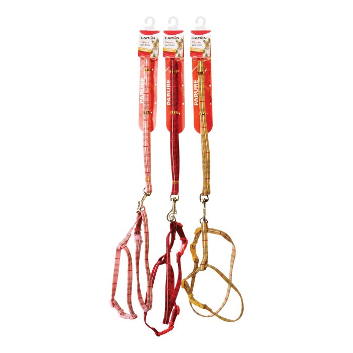 Pettorina + guinzaglio in velluto tartan 10 x 1200 mm