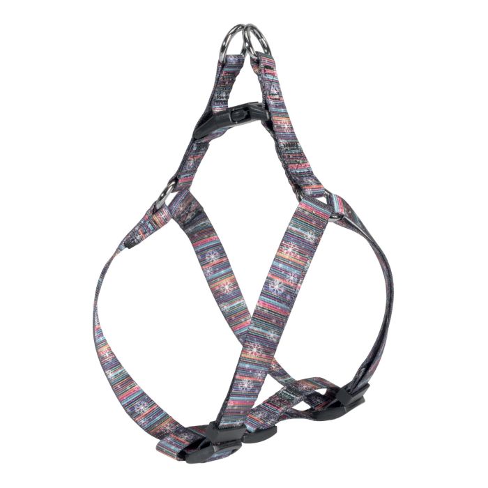 Pettorina regolabile in nylon, caratterizzata dalla particolare fantasia multicolore.
