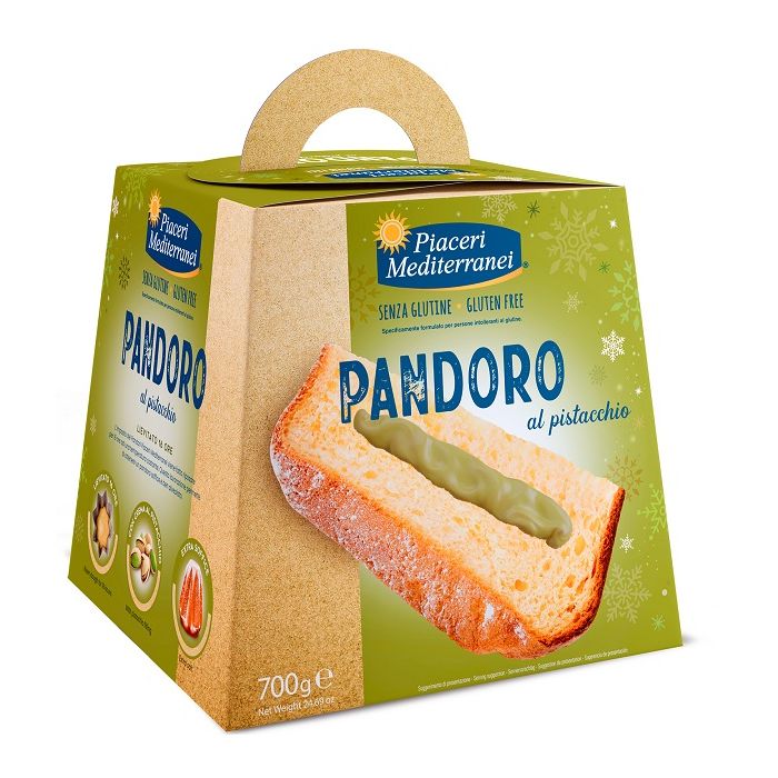Burro, farcitura di pistacchi 15% (sciroppo di glucosio, zucchero, acqua, pasta al pistacchio 8%, olio di girasole, latte scremato in polvere, tuorlo d'uovo, alcol, aromi; gelificante: pectine; conservante: potassio sorbato; coloranti: concentrato di carota, zucca e spirulina), farina di riso, latte magro reidratato, uova, zucchero, lievito naturale (acqua, farina di riso, amido di mais, sale, fermenti lattici), amido di mais, lievito di birra; umidificanti: glicerolo, sorbitolo; addensanti: gomma di xanthan, gomma di guar; emulsionanti: mono- e digliceridi degli acidi grassi (colza), aroma, burro di cacao, sale.