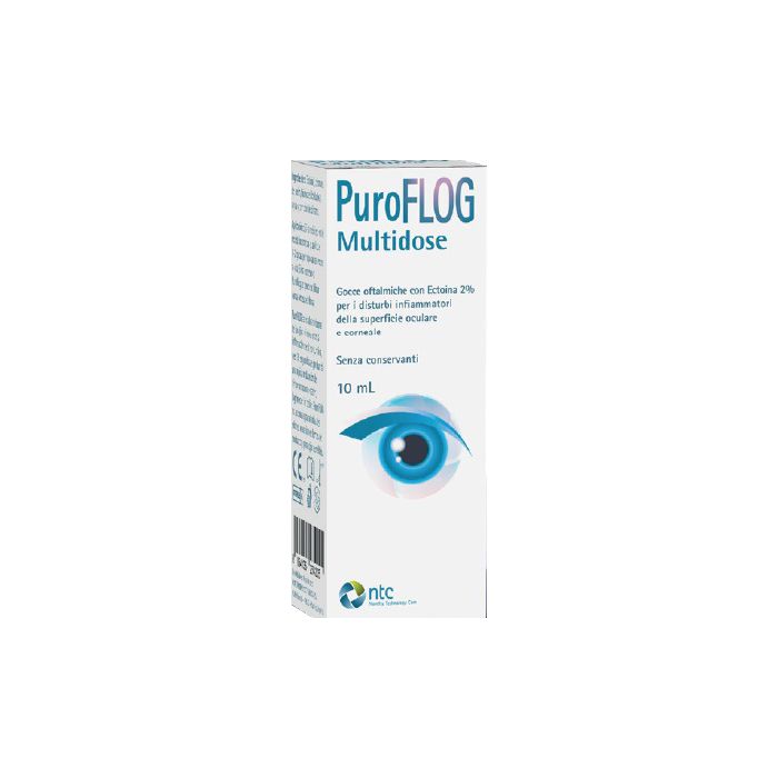 PuroFLOG Multidose è una soluzione isotonica e può essere usato per trattare lesioni dell'occhio e malattie infiammatorie della superficie corneale e oculare.