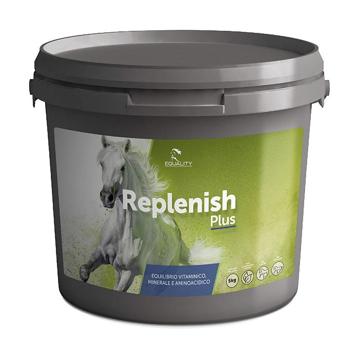 Replenish Plus contiene calcio e fosforo in rapporto bilanciato, vitamine, minerali, oligoelementi e aminoacidi necessari ad integrare un buon funzionamento dell’organismo per evitarne carenze soprattutto nei periodi di maggior bisogno. Gli zuccheri esterificati, fonte di energia di immediato utilizzo, forniscono supporto alle attività metaboliche. La presenza di olio di semi lino fornisce acid grassi (omega-3 e omega-6).