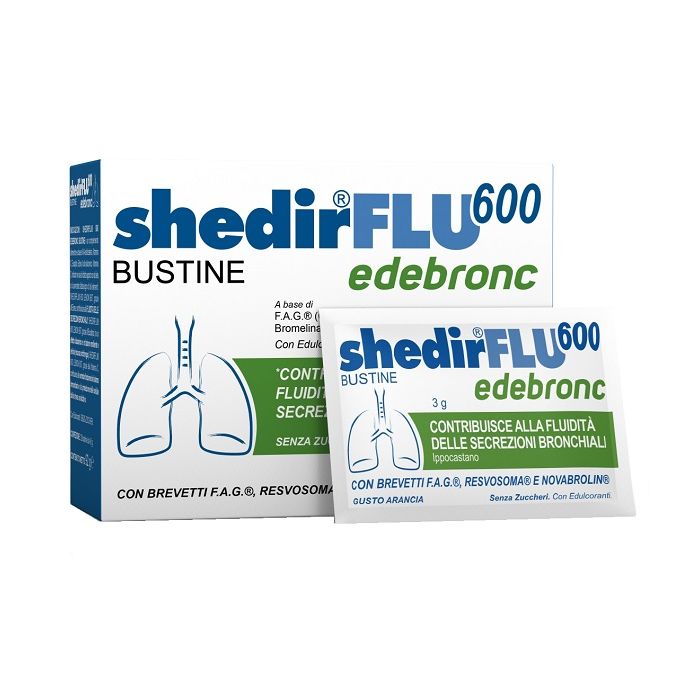 Shedirflu 600 edebronc 20 bustine da 3 g gusto arancia, senza glutine, naturalmente privo di lattosio, senza zuccheri, con edulcorante
