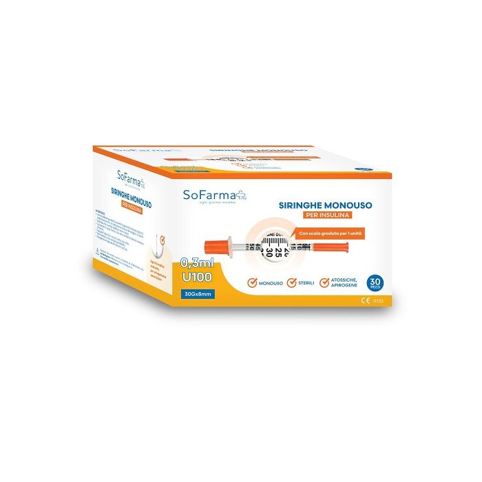 Siringa per insulina 0,3 ml 30 pezzi sofarmapiu'