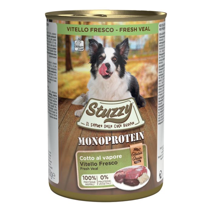 Alimento completo che unisce la singola fonte proteica animale al gusto irresistibile degli ingredienti di qualità, preservato dall'attenta cottura al vapore.