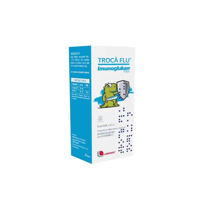 Integratore alimentare in soluzione orale a base di Imunoglukan e vitamina C.