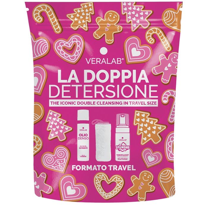 Veralab doppia detersione travel kit xmas 2025 1 olio denso 30 ml + 1 spumone 50 ml + 1 panno microfibra