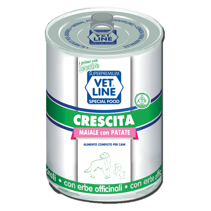 Alimento naturale, completo e bilanciato realizzato con maiale, patate ed erbe officinali certificate che ottimizzano il metabolismo del cane dallo svezzamento all'età adulta.
