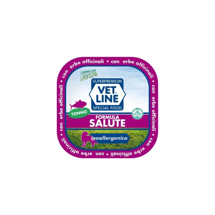 Tonno 82% (100% delle carni), patate 15%, erbe officinali attive, vitamine, oli e grassi vegetali.
