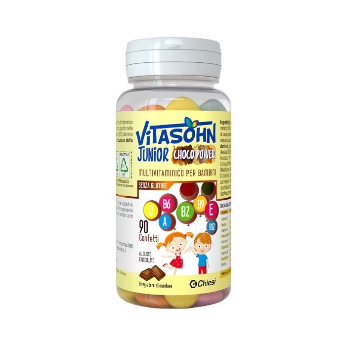 Saccarosio, cioccolato [cacao minimo 35%, zucchero, pasta di cacao, burro di cacao; emulsionante: lecitina di soia, aroma naturale (può contenere tracce di latte e suoi derivati)], amido di riso, miscela vitamine (acetato di DL-alfa-tocoferile, nicotinammide, acetato di retinile, cianocobalamina, colecalciferolo, cloridrato di piridossina, riboflavina, acido pteroil-monoglutammico, D-biotina); agente di rivestimento: cera carnauba; gelificante: gomma arabica; maltodestrina; coloranti: betacarotene, riboflavina, betanina, antociani, clorofillina.