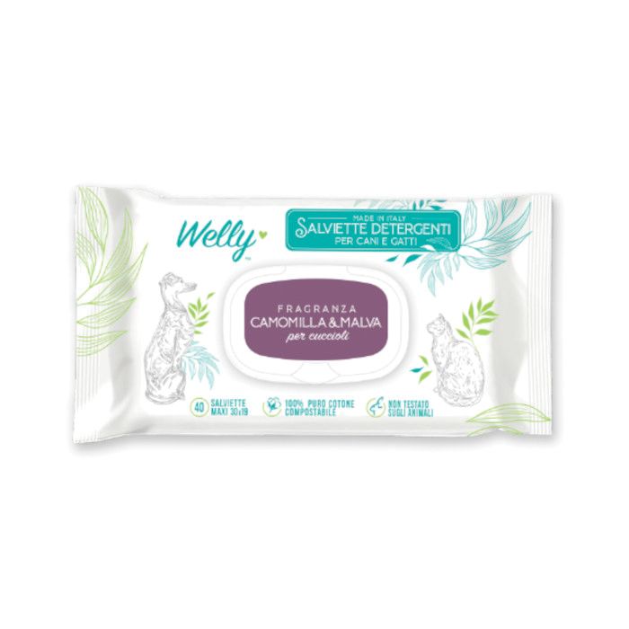 Welly salviette detergenti per cuccioli camomilla & malva 40 pezzi