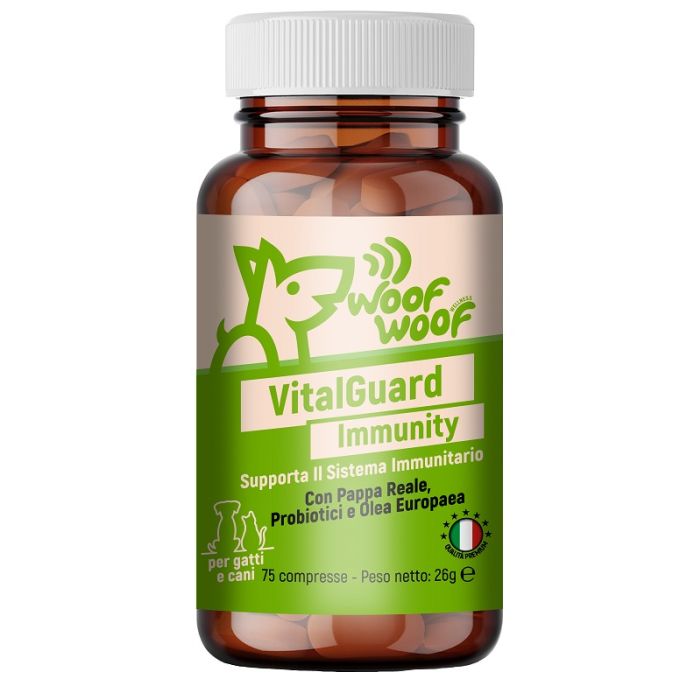 Woof woof wellness vitalguard immunity sistema immunitario cani e gatti 75 compresse